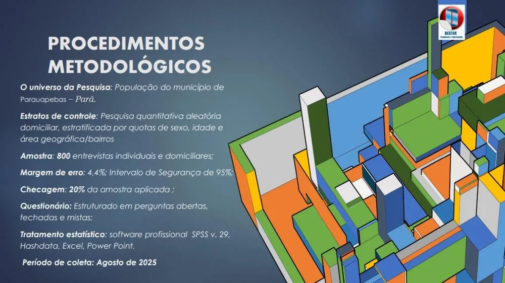 O levantamento ouviu 800 pessoas em entrevistas individuais e domiciliares nas zonas urbana e rural do município. A margem de erro é de 4,4%, com intervalo de confiança de 95%.
