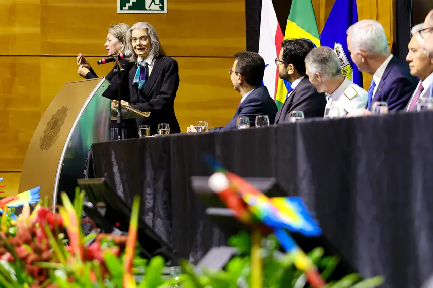 A conferência de abertura foi conduzida pela presidente do TSE, ministra Cármen Lúcia, que reforçou a importância da conexão entre democracia e preservação ambiental.