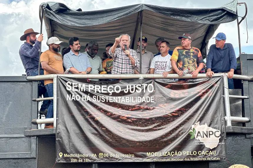 A mobilização em Defesa da Cacauicultura ocorreu às margens da Rodovia Transamazônica e reuniu agricultores, lideranças políticas e representantes da comunidade. O secretário de Desenvolvimento Agropecuário e da Pesca (Sedap), Giovanni Queiroz, ressaltou o compromisso do Estado em buscar soluções estruturantes, como a atração de empresas para o processamento do cacau na própria região.