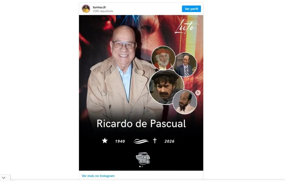 O ator mexicano Ricardo de Pascual morreu nesta terça-feira (21), aos 86 anos. A informação foi confirmada por pessoas próximas ao artista, cuja trajetória marcou gerações de telespectadores na América Latina.